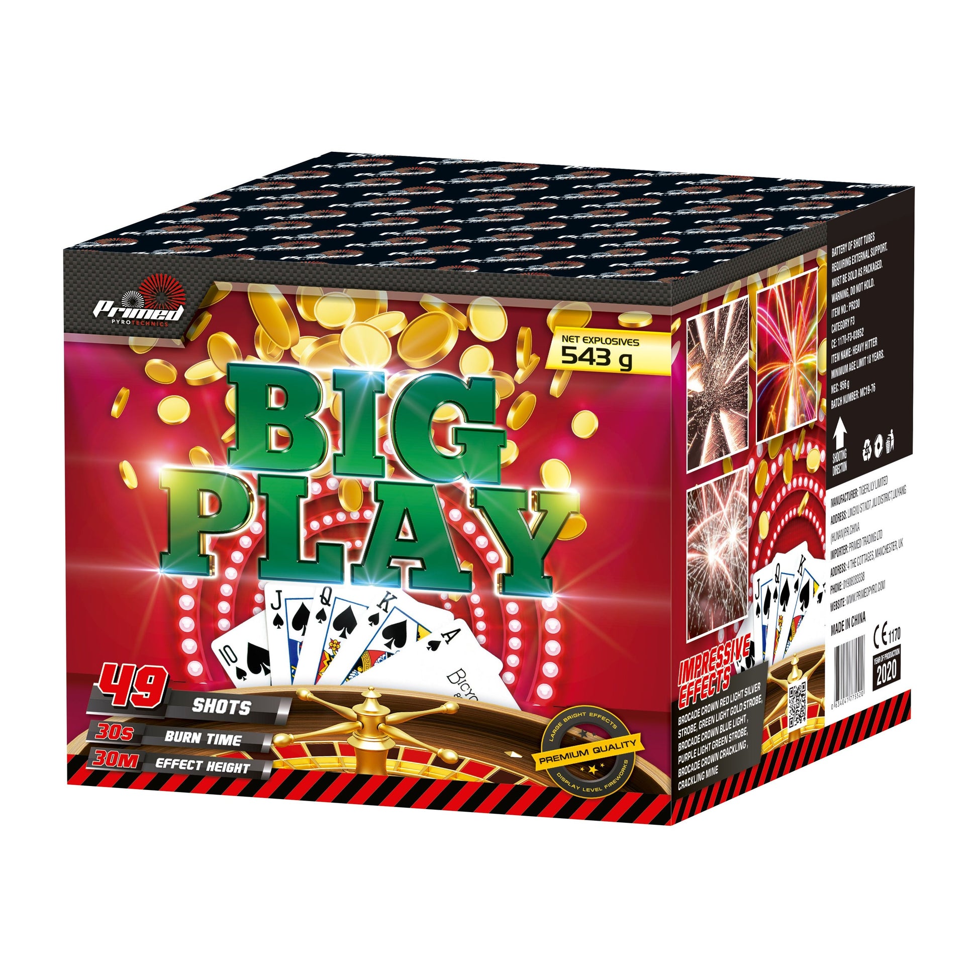 The Big Play is a 49-shot firework with a maximum 30mm bore from Primed Pyrotechnics. As you’d expect, the quality of this 1.3g piece is truly exceptional. It fires straight-up huge bursts of what they call Ti-Radium, which can only be described as a titanium salute that then radiates into gold flower crowns—it's incredibly impressive and VERY loud!