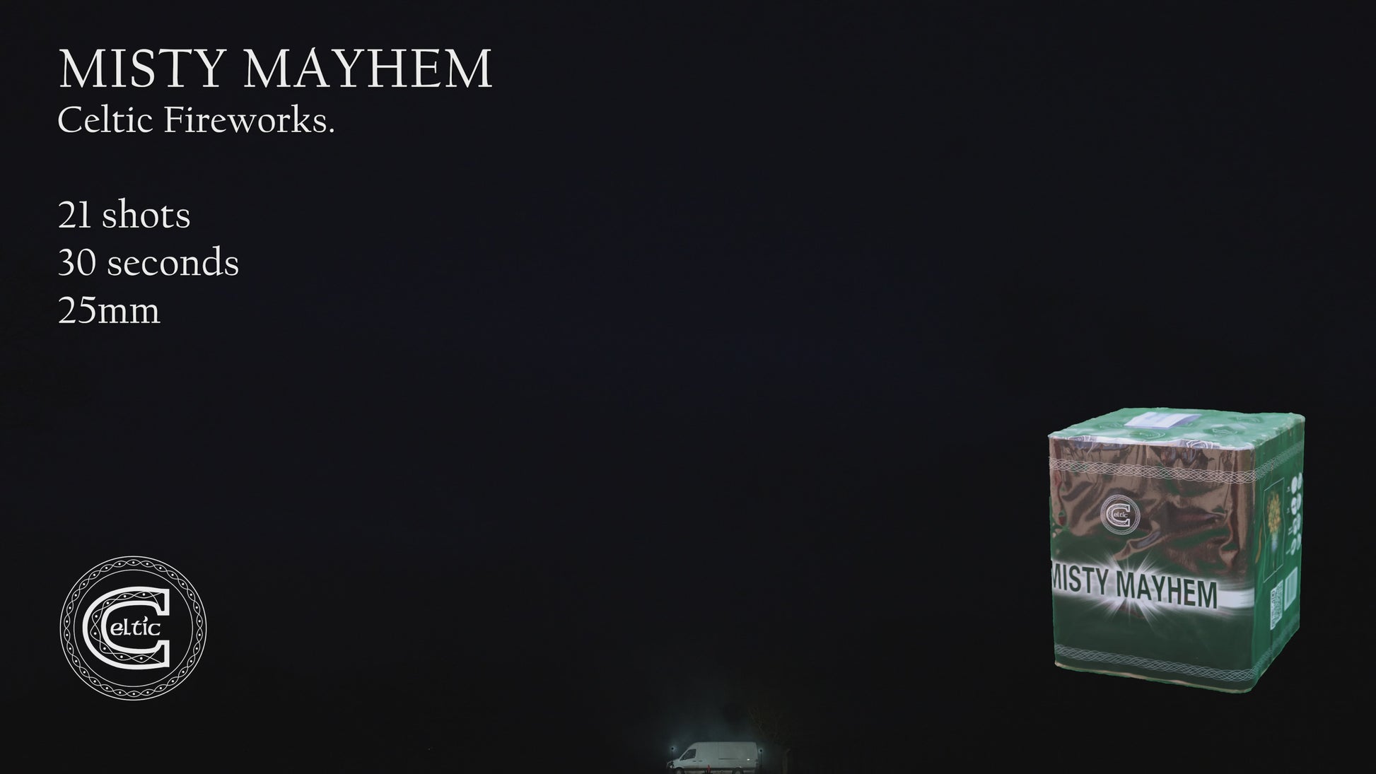 Misty Mayhem is a unique 21-shot cake that combines straight and fanned firing for an impressive visual effect. It launches red tails into dazzling golden willow bursts, followed by blue tails and vibrant red ghost bursts. This captivating, sky-filling display is perfect as a finale for any small garden show. Truly a spectacle that must be seen in person—the video simply doesn't capture its full brilliance!