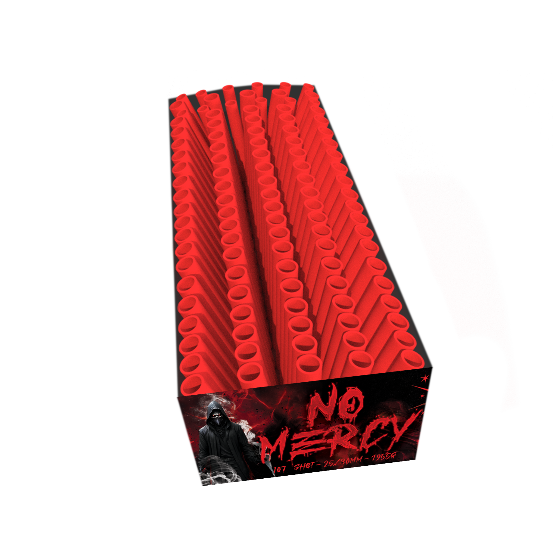 No Mercy features an astonishing 107 shots from 25mm and 30mm tubes—a truly breathtaking compound packed with countless effects and colours. Check out the video to see it in action. It’s relentless and shows no mercy at all!