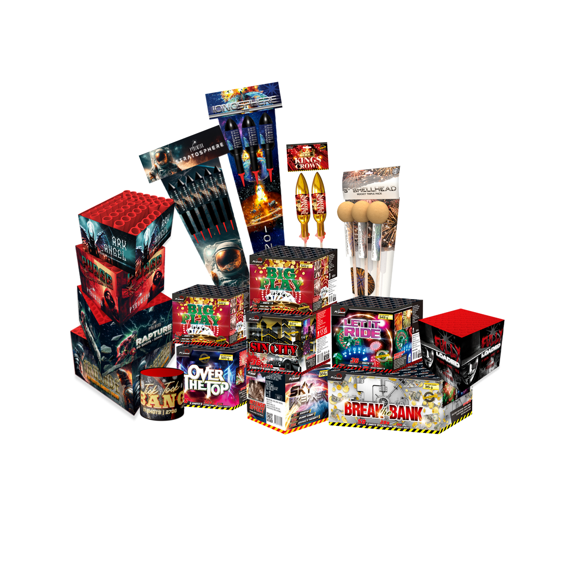 This package includes everything you need for a professional-grade display, featuring a wide selection of top-tier fireworks.