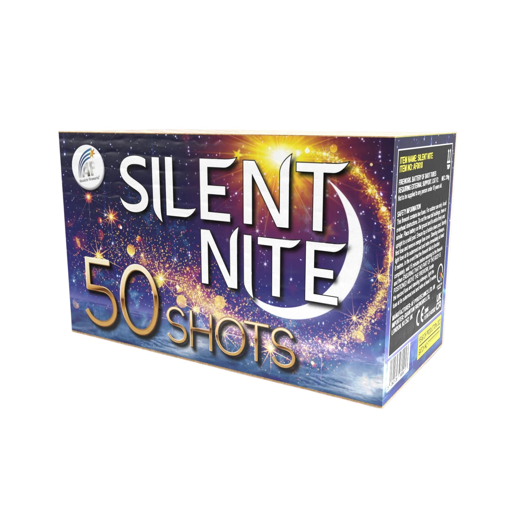 Silent Nite may be low noise, but it certainly doesn’t hold back on impact. This impressive 50-shot firework delivers a stunning blend of vibrant colours and eye-catching effects, making it ideal for a smaller low-noise display or as a striking focal point within a traditional show.